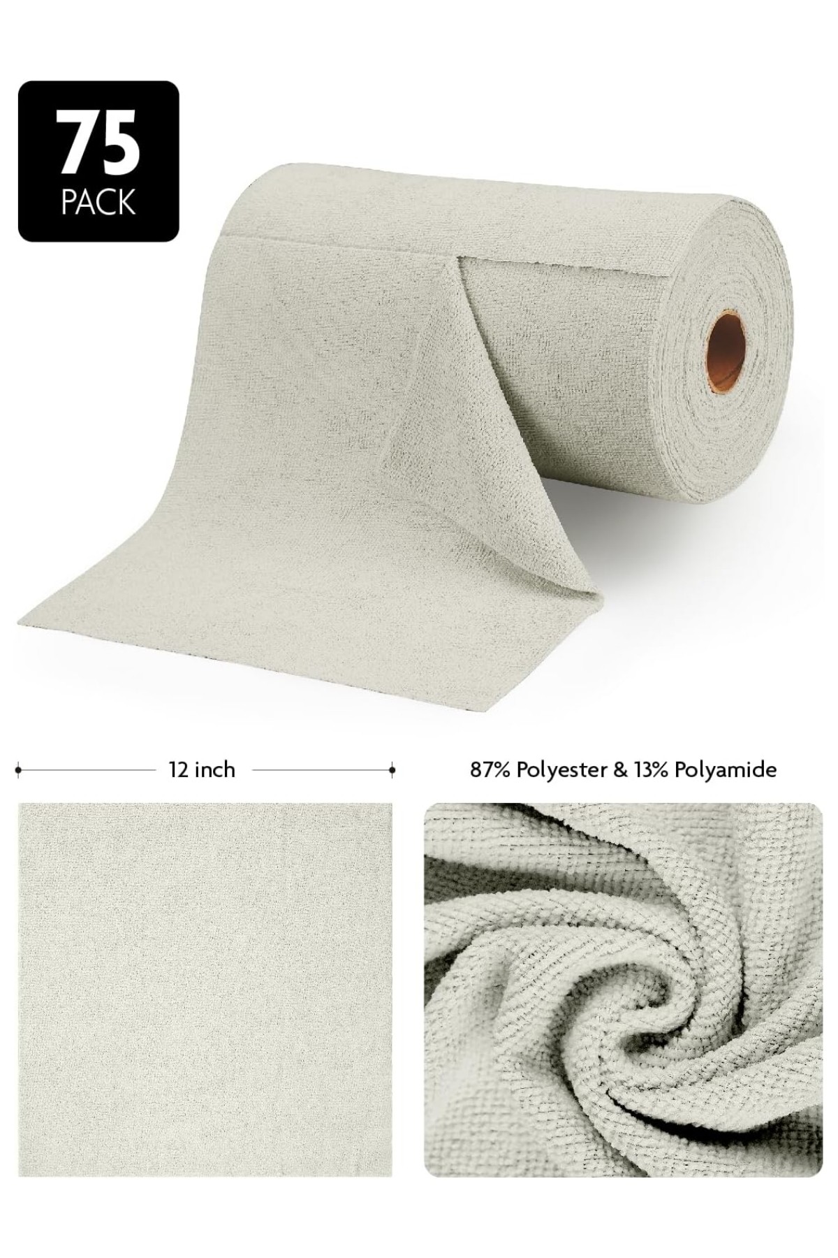 Çok Amaçlı Rulo Mikrofiber Temizlik Bezi 30x30 75 Yapraklı Açık Gri
