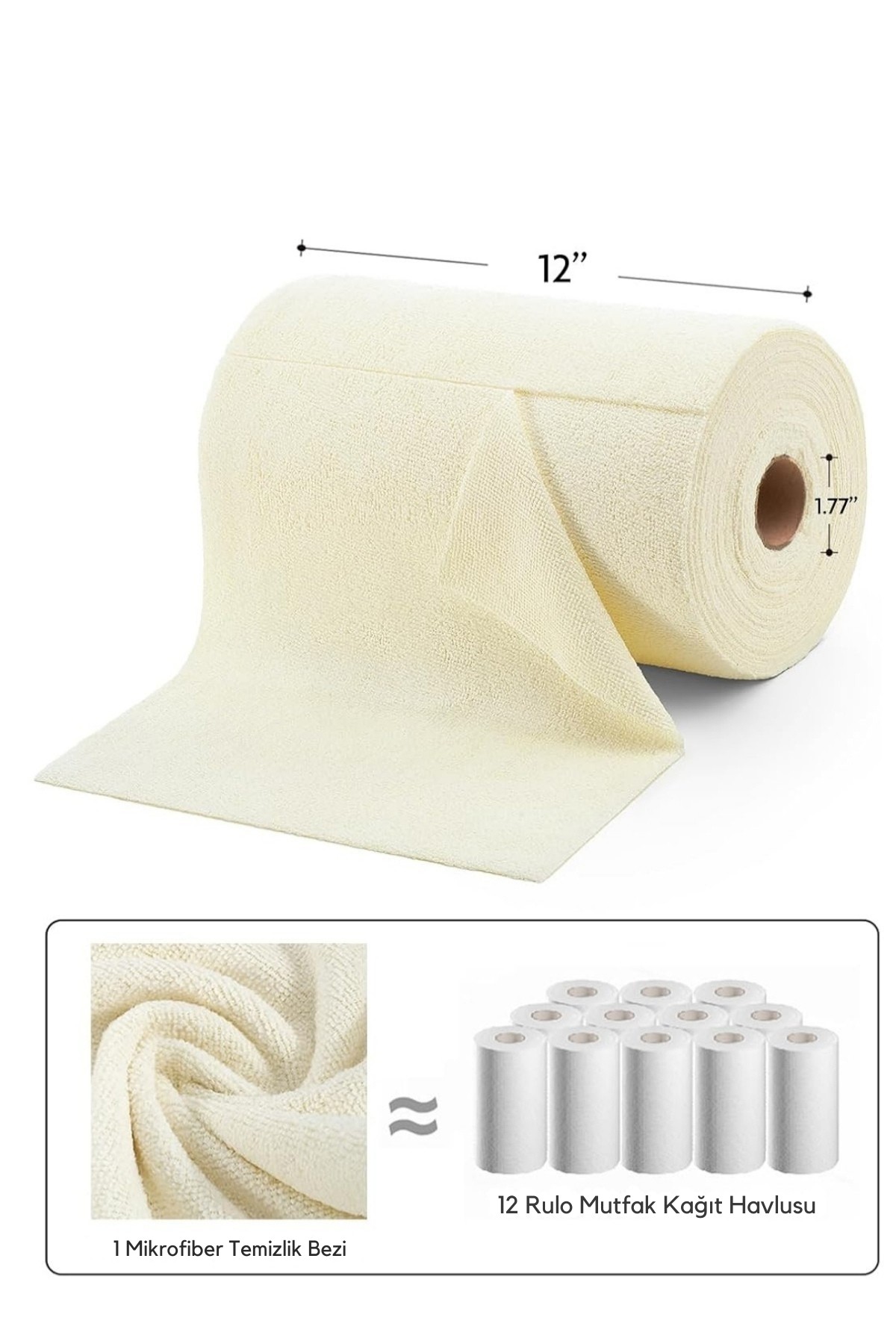 Çok Amaçlı Rulo Mikrofiber Temizlik Bezi 30x30 75 Yapraklı Bej