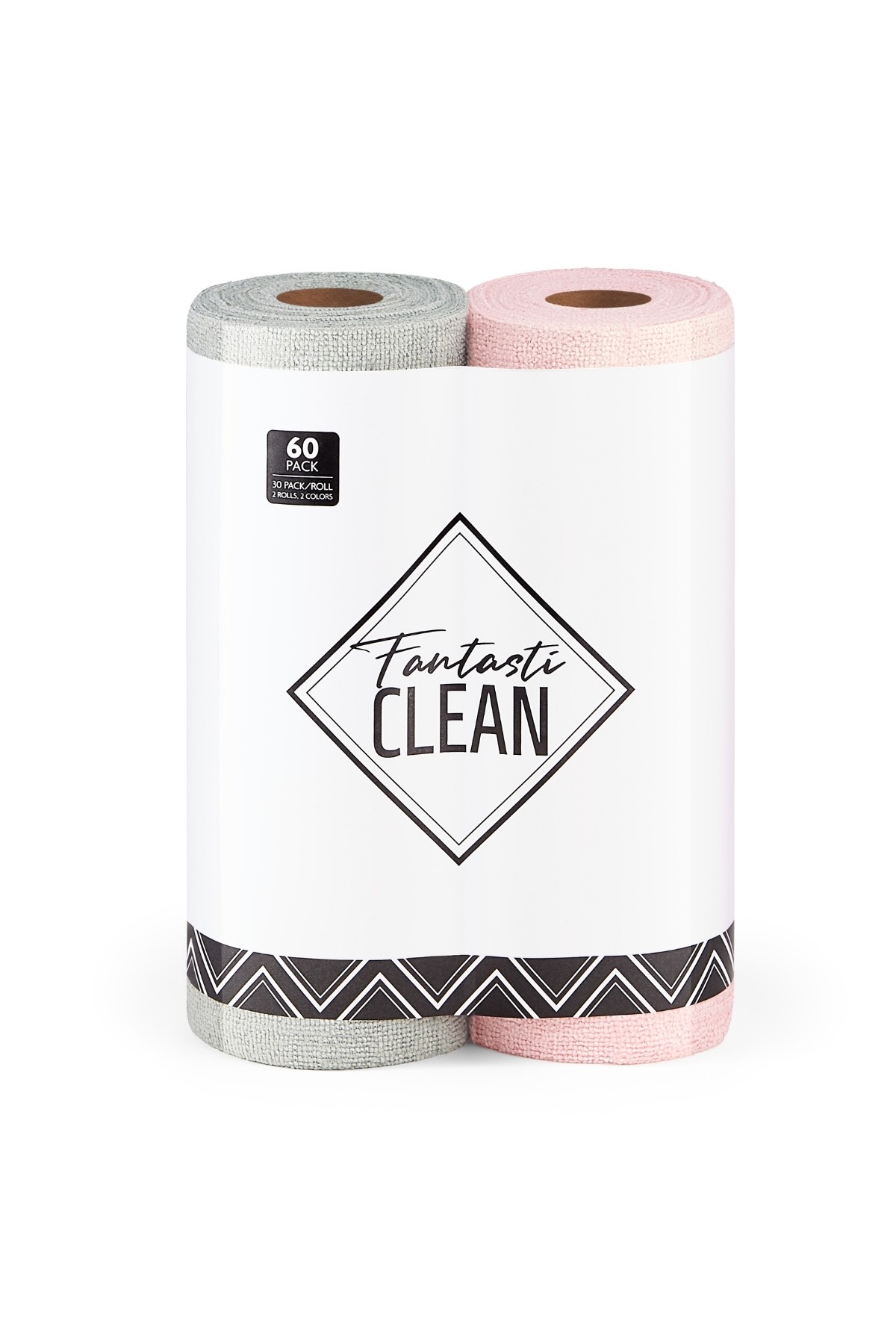 Çok Amaçlı Rulo Mikrofiber Temizlik Bezi 30x30 60 Yapraklı Gri - Pembe(2x30’lu Paket)