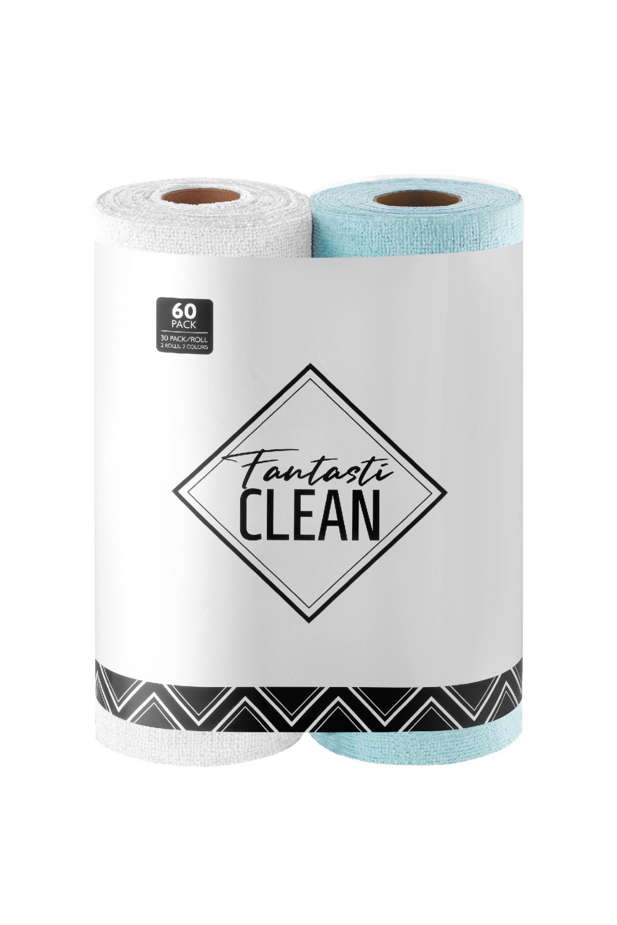 Çok Amaçlı Rulo Mikrofiber Temizlik Bezi 30x30 60 Yapraklı Beyaz - Mavi(2x30’lu Paket)