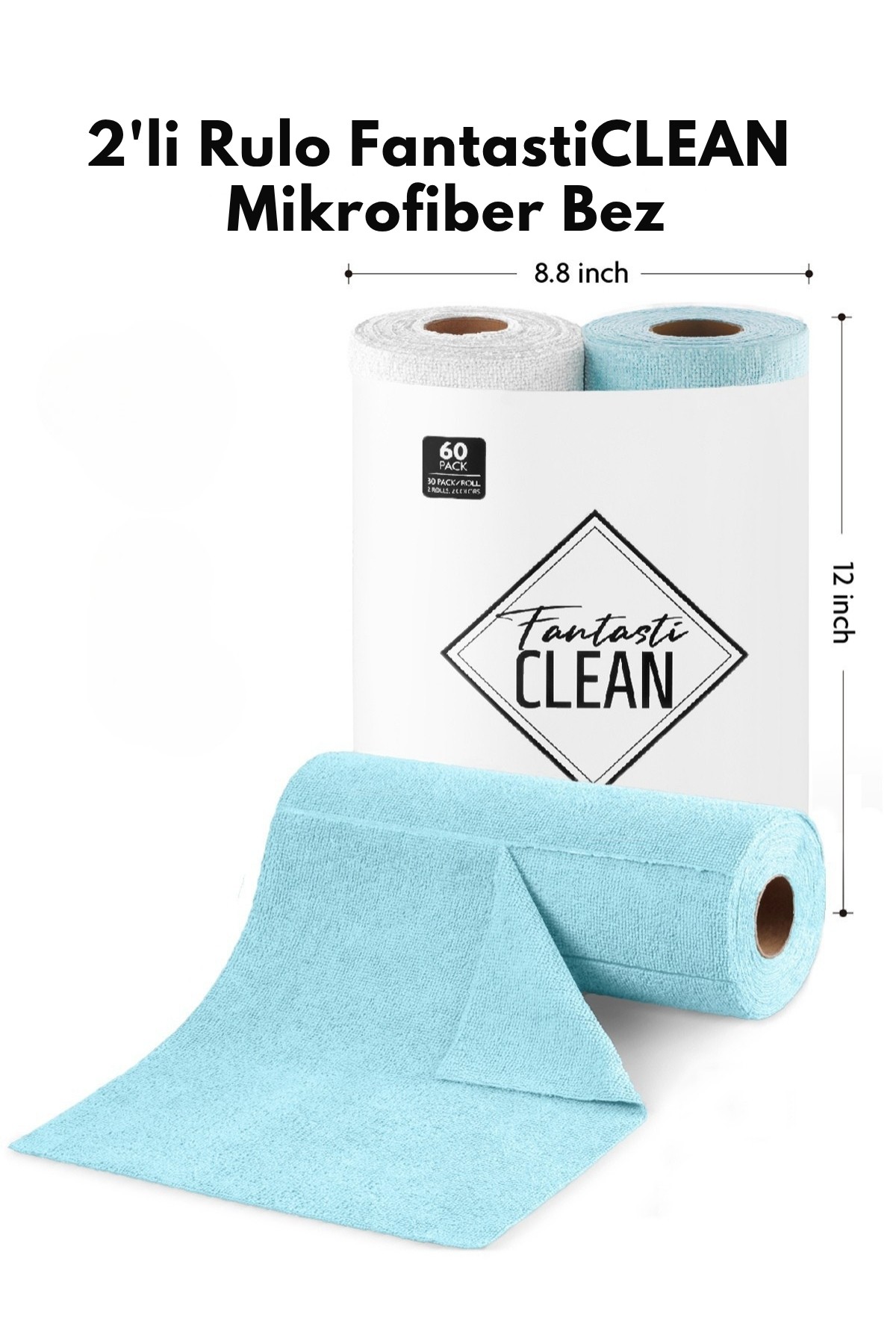 Çok Amaçlı Rulo Mikrofiber Temizlik Bezi 30x30 60 Yapraklı Beyaz - Mavi(2x30’lu Paket)